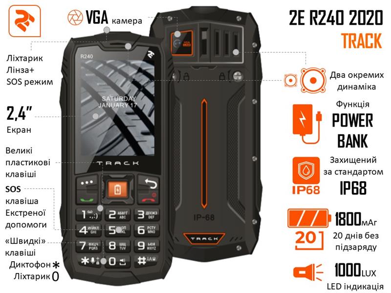Описание товара Мобильный телефон 2E R240 (2020) Dual SIM Black