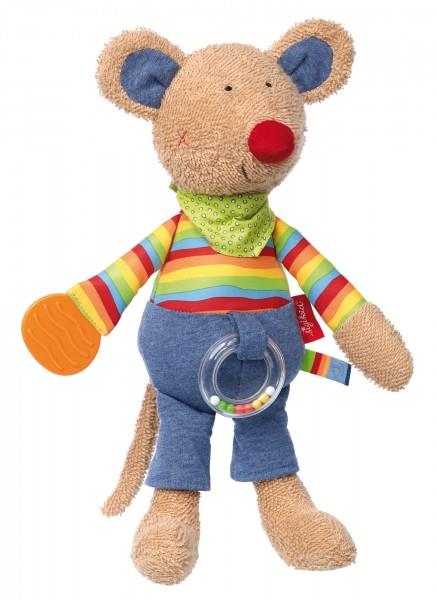 Мышонок «Колин» в радужной кофточке, с оригинальным шарфом. Такая игрушка станет отличным компаньоном ребенка в ежедневных делах и свершениях. Мышонок с погремушкой, которая поможет ребенку развить мелкую моторику, слуховое восприятие. На одной из лапок мышонка - силиконовый наконечник-прорезыватель. Красочная животное протягивает лапки и призывает ребенка к игре. Подходит для детей от рождения. Безопасность материалов утверждена немецким стандартам качества. Размер 32х12х12.
