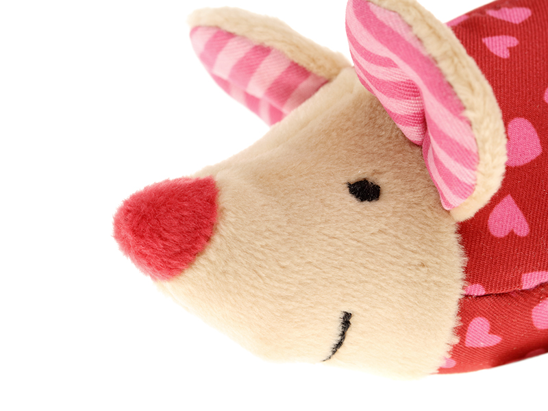 Крихітна м’якенька мишка стане улюбленим та вірним другом, з яким так приємно обійматись та засинати перед сном. Іграшка вироблена із напрочуд приємного на дотик котону та плюшу у червоних та рожевих кольорах. Немовля залюбки досліджуватиме м’якенькі вуха та довгий хвостик. Іграшка абсолютно безпечна для дитини. Рекомендовано малюкам від народження.