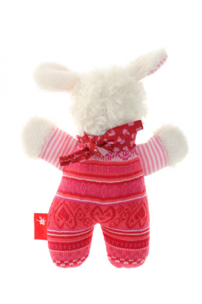 Мягкая плюшевая овечка-погремушка станет любимым и верным другом, с которым так приятно обниматься и засыпать перед сном. Игрушка произведена с удивительно приятной на ощупь микрофибры розового цвета. Овечка одета в красный хлопчатобумажный костюм с узорами. Младенец будет охотно исследовать мягкие уши и лапки. Игрушка абсолютно безопасна для ребенка. Рекомендуется детям от рождения.