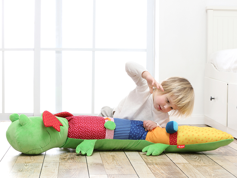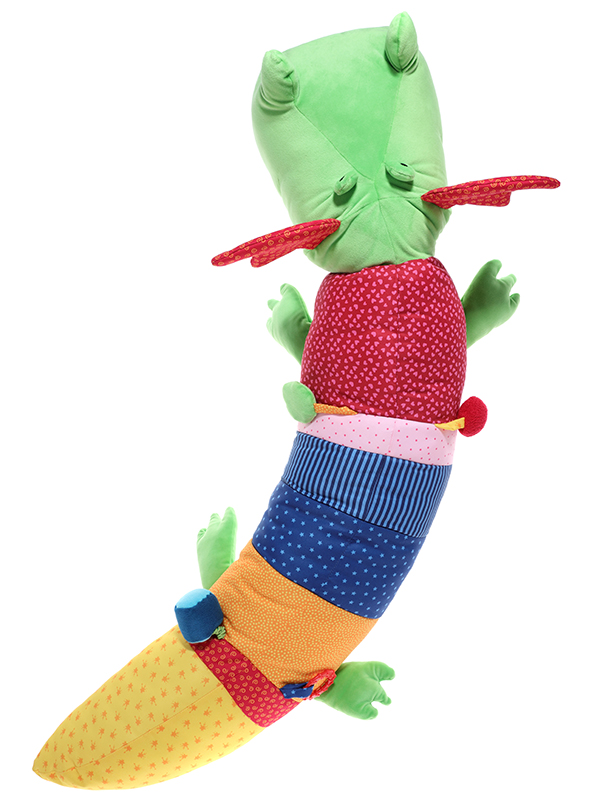 Для дитини не буває забагато іграшок. Німецький бренд sigikid створив метрового дракона – величезну іграшку із безліччю розвиваючих можливостей. Він великий і довгий (120 см), кольоровий і такий цікавий! З крокодилом можна відпочивати, грати та розвиватись. Іграшка оснащена різноманітними розвиваючими дрібничками, тут дитина знайде: прорізувач, брязкальце, елементи, що шарудять та пищать. Дракон вироблений із мікрофібри та бавовни: різні кольори та текстури чудово розвиватимуть тактильний досвід малюків. Різні кольори та кумедний дизайн приваблюватиме малюків. Безпечність матеріалів дозволяє використовувати іграшку вже з 3-го місяця життя. Коли дітлахи підростуть, іграшка знадобиться у якості зручної подушки.