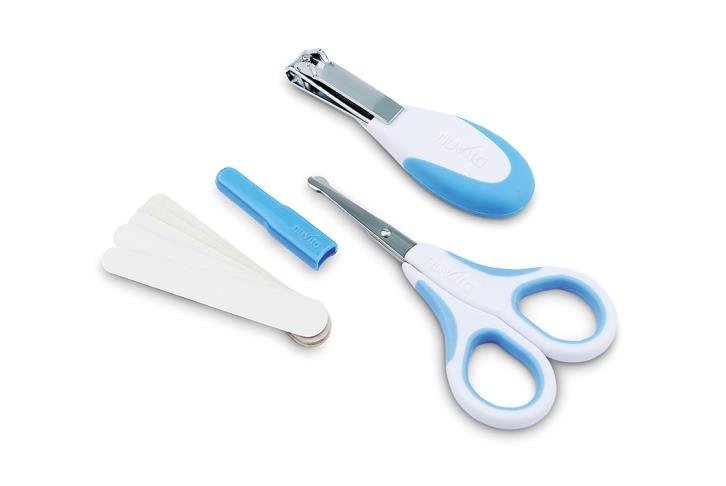 Набор для безопасного ухода за младенцем с рождения от итальянского производителя Nuvita. Набор выполнен в бело-голубом цвете, сюда входят: ножницы с закругленными кончиками, эргономичные щипчики для ногтей и 5 пилочек. Ножницы и щипчики удобно держать в руках, форма ручек эргономична. Инструменты произведены из нержавеющей стали - прочного и гипоаллергенного материала.