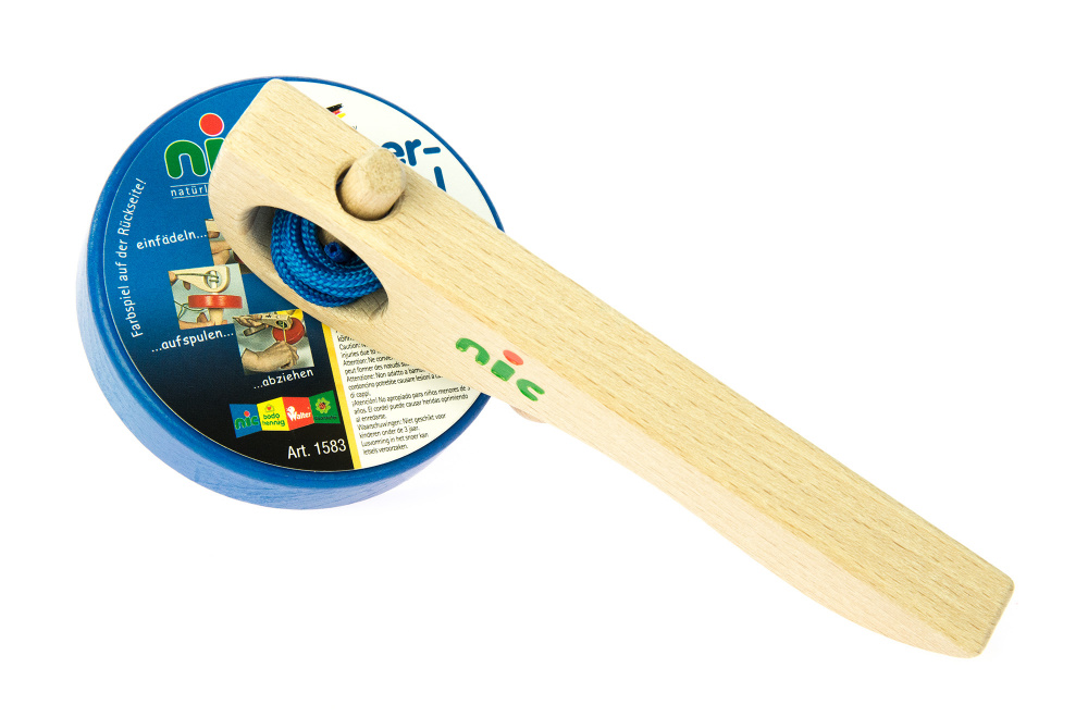 Пізнавати світ граючи разом із дерев’яною дзиґою німецького виробника іграшок nic весело та просто. Розвиваюча іграшка постачається без упаковки. Вона вироблена із натурального дерева. Об’ємний диск (Ø 85 мм) вкритий блакитною фарбою на водній основі. На ручці розміщений кольоровий логотип німецького бренду. Шнурок, яким розкручується дзиґа, вироблений із текстилю блакитного кольору. Щоб запустити дзиґу, необхідно протягнути стрижень іграшки через маленькі отвори великої ручки. Потім взяти блакитний шнурок, трохи протягти його через найменший отвір стрижня. Після чого, взятись за блакитний диск та накрутити мотузку. Ставимо іграшку на рівну поверхню і тягнемо за шнурок, водночас знімаючи велику ручку. Інтерактивна іграшка призначена для дітей від 4-х років.