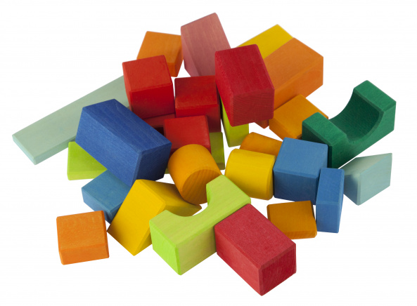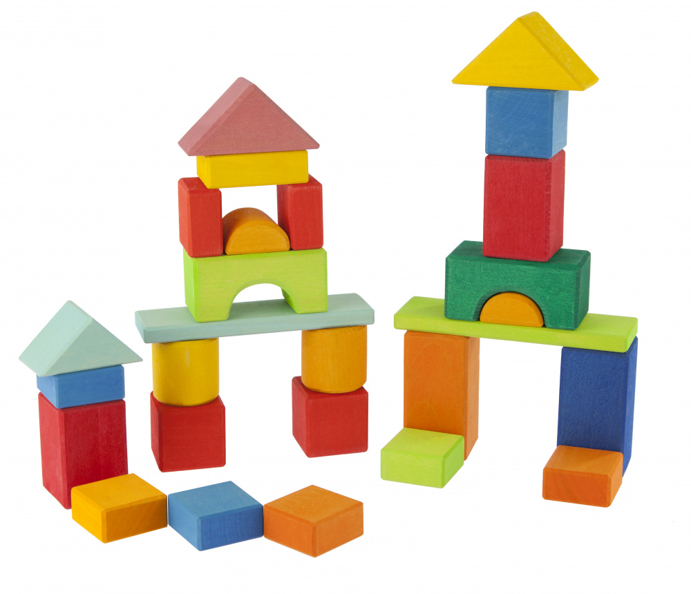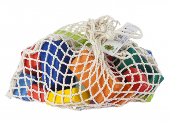 Безмежний світ кольорів та геометричних форм втілений у дерев’яному наборі конструктора німецького виробника іграшок nic. Усі 27 деталей зав’язані у текстильну сітку, яку можна використовувати для зручного зберігання набору або інших іграшок. Матеріал, з якого вироблений комплект – натуральне дерево, вкрите матовими фарбами на водній основі. Фарби чудово підкреслюють малюнок дерева на сторонах брусків. Деталі невеликі, легкі, вони приємні на дотик і якісно оброблені.
