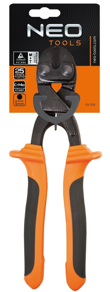 Ножницы для резки проволоки NEO, размер 210 мм. Закаленные губки режут стальную проволоку с максимальным диаметром до 5 мм. Высокосортная хромованадиевая сталь гарантирует долголетнюю прочность губок. Двухкомпонентные, эргономичные рукоятки повышают комфорт эксплуатации. Качество инструмента подтверждено сертификатом TÜV и 25-летней гарантией производителя. Бренд NEO оправдывает ожидания профессионалов.