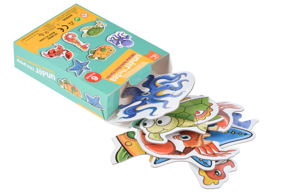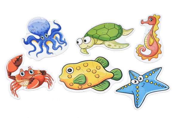 «Жители океана» - яркий разноцветный пазл для самых маленьких детей. Детали довольно большие, производитель рекомендует набор для детей от 18 месяцев. В наборе детали для сборки 6 фигурок. Детали изготовлены из плотного, твердого картона. Их можно составлять неограниченное количество раз и они не деформируются. Изображение нанесено нетоксичными красками.