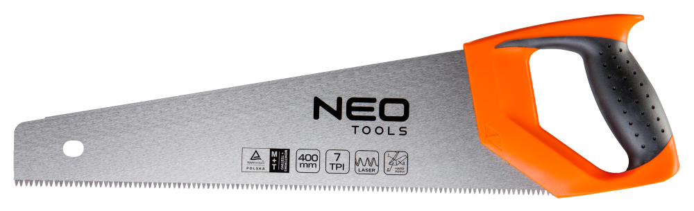 Пила NEO по дереву (ножовка), 400 мм, 7TPI / 11TPI, двухкомпонентная рукоятка,трехсторонняя заточкa