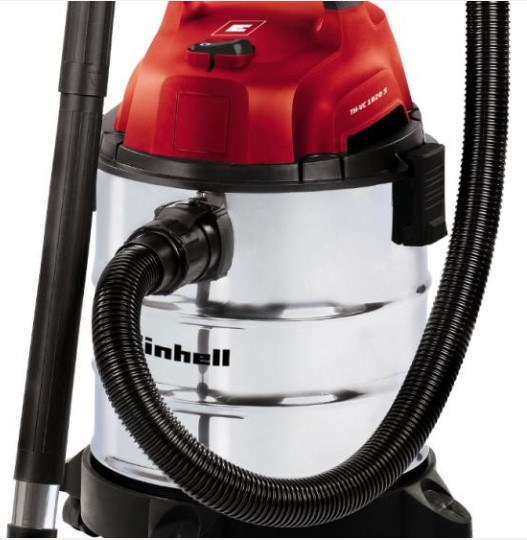 Пылесос Einhell TH-VC 1820 S - универсальный многоцелевой пылесос для сухой и влажной уборки. Пылесос оснащен вместительным 20-литровым контейнером из нержавейки. Пылесос имеет диаметр всасывающего шланга 36 мм (длина шланга в этой модификации 3 м), удобную ручку для переноски во время пользования. Аксессуары для уборки расположены на специальном держателе, находящемся непосредственно на корпусе пылесоса. Аппарат оснащен поплавковым выключателем, что позволяет использовать инструмент для всасывания жидкости - как только пылесос втянет жидкость, инструмент автоматически отключится.