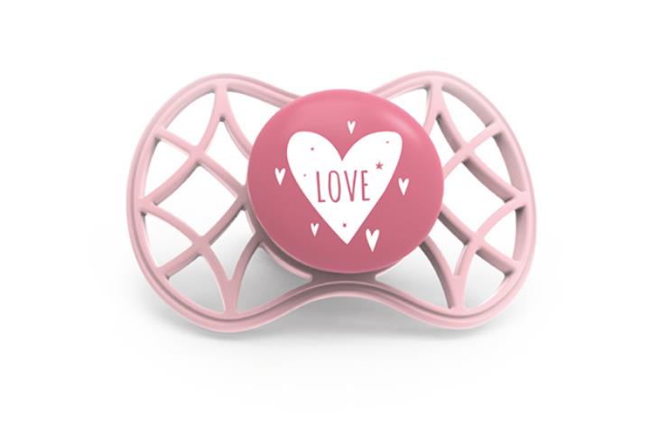 Описание товара Пустышка симметрическая Nuvita NV7065 Air55 Cool 0m+ "LOVE" розово-персиковая