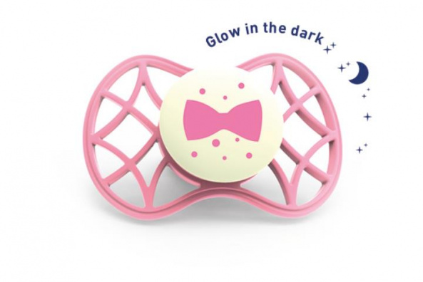 Описание товара Пустышка симметрическая Nuvita NV7085 Air55 Cool 6m+ "бант" светящаяся в темноте цвет розовый