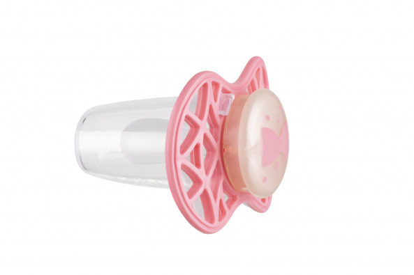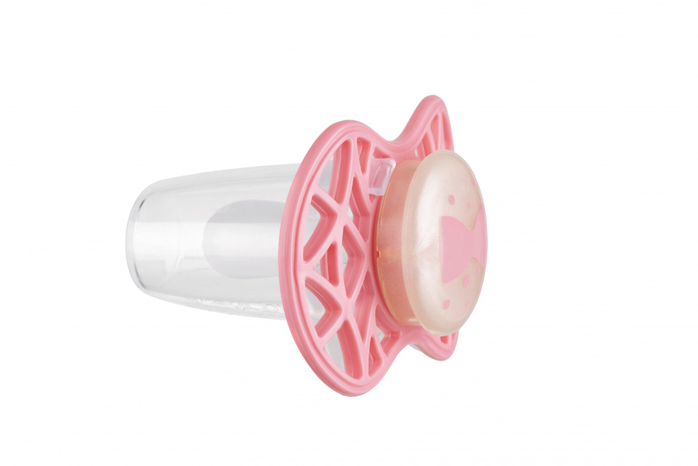 Характеристики товара Пустышка симметрическая Nuvita NV7085 Air55 Cool 6m+ "бант" светящаяся в темноте цвет розовый