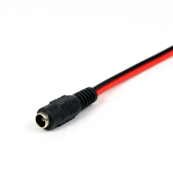Двухконтактный разъем питания гнездо в целях ускорения и удобства монтажа выполнен с красно-черным проводом длиной 20 см. Окончания проводов подготовлены для дальнейшего монтажа: зачищены и облужены оловом. Никелевое покрытие контактов повышает долговечность разъема и позволяет применять его в условиях климатических перепадов.