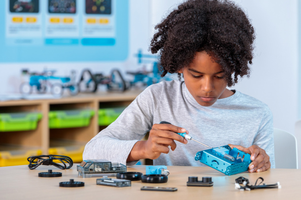 Благодаря революционному дизайну mBot2 сочетает металлические детали, мощную электронику, блочное программирования и текстовое в Python в одном единственном работе. Он имеет совершенно новую программируемую плату управления, высокоточные моторы с энкодерами и недавно разработанную новую систему сенсоров. С mBot2 дети могут изучать современные компьютерные технологии, такие как Интернет вещей, Искусственный интеллект, блочное программирования и Python, в то время, когда они проектируют и собирают своих роботов.