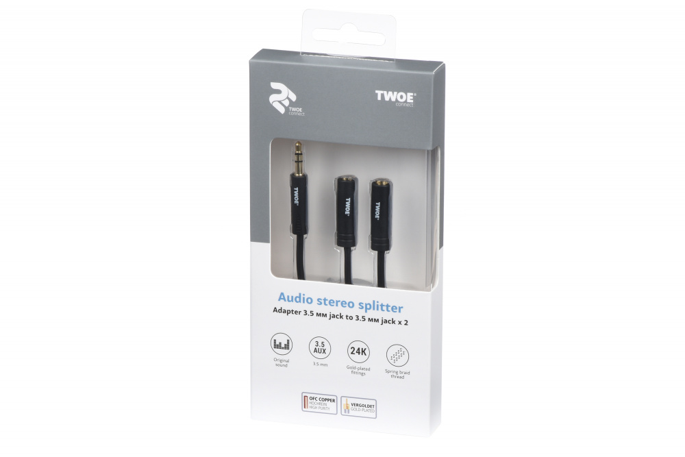 Разветвитель для наушников 2E-W9697 Adapter 3.5мм jack x2, Black - преобразует один 3,5-мм стереоразъем в два 3,5-мм стереоразъема. Это позволяет вам делиться музыкой с семьей или друзьями через наушники из того же источника. Он подходит к подключению к мобильному телефону, MP3-плееру, планшету, ноутбуку, ПК и т. Д. Коннекторы: 3.5мм jack to 3.5мм jack x2, Вид сигнала: аудио. Позолоченные разъемы -24 карат, проводник из бескислородной меди (99,9%), с гнущемся дизайном, Длина: 0.15м, Материал кабеля- ПВХ, Цвет: черный.