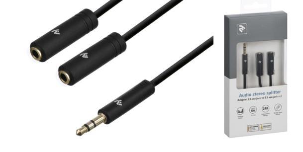 Кабель 2E аудио (jack 3.5mm jack(M) x 2(F), 0.15m, black