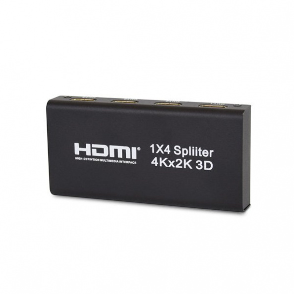 HDMI-разветвитель на 1 HDMI-вход, 4 HDMI-выхода. Поддержка HDMI v1.4b. Максимальное разрешение Ultra HD 4K. Пропускная способность до 10,2 Гбит/с. Металлический корпус. 112x55x18 мм HMDI-разветвитель (splitter) HDMI1X4