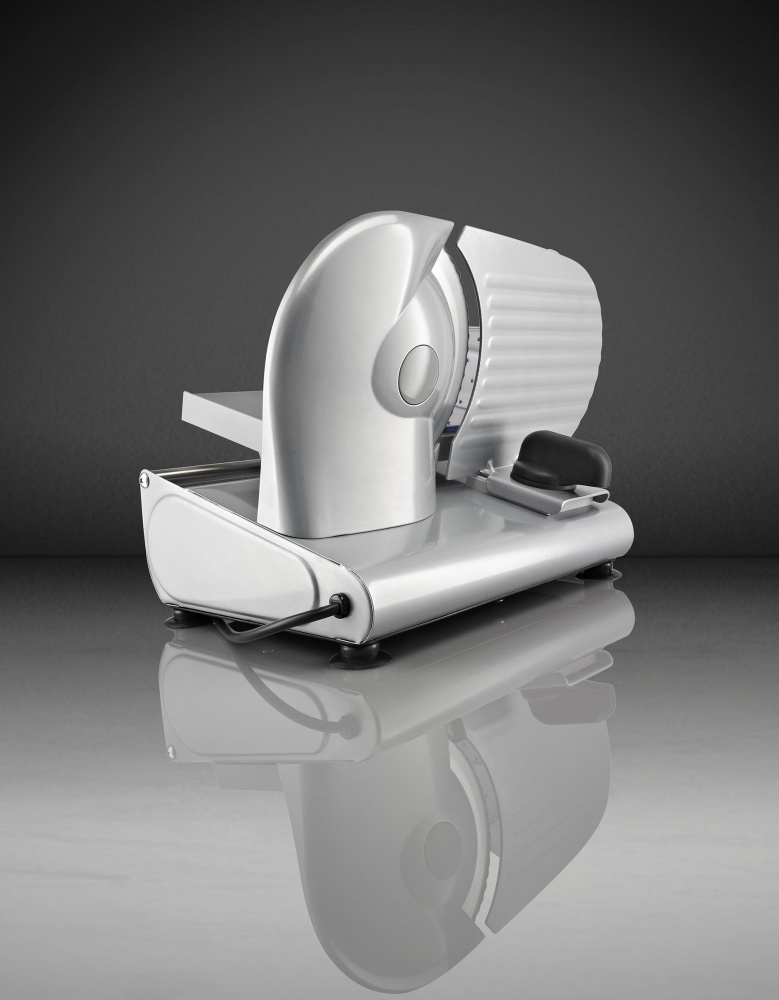 Ломтерезка Gorenje R506E имеет пластиковые ножки. Корпус изготовлен из металла и пластика. Диаметр ножа 19 см. Нож из нержавеющей стали волнообразной заточки. Длина присоединительного кабеля: 1 м.