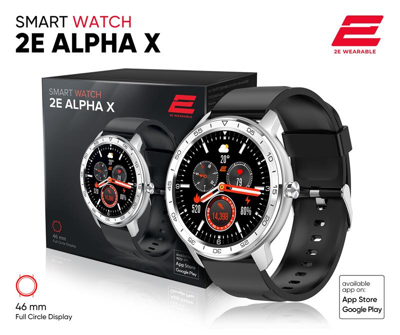 2E Alpha X 46 mm – стильний смарт-годинник з широким набором функцій, покликаний стати вашим особистим помічником на кожен день. Великий круглий дисплей годинника приємно здивує вас якісним, чітким і барвистим зображенням. Чутливий сенсор і висока яскравість, навіть при попаданні сонячних променів, лише нададуть впевненості та комфорту при використанні.. пульсометр. розумний будильник. вібрація. крокомір. лічильник калорій. G-сенсор. датчик вимірювання тиску (тонометр). керування музикою. моніторинг сну. повідомлення. моніторинг рівня насичення крові киснем (SpO2). змінні екрани. широкий вибір спорт-режимів 2E Alpha X 46 mm – стильные смарт-часы с широким набором функций, призваны стать вашим личным помощником на каждый день. Большой круглый дисплей часов приятно удивит вас качественным, четким и красочным изображением. Чувствительный сенсор и высокая яркость, даже при попадании солнечных лучей, лишь предадут уверенности и комфорта при использовании.. пульсометр. умный будильник. вибрация. шагомер. счетчик калорий. G-сенсор. датчик измерения давления (тонометр). управление музыкой. мониторинг сна. сообщения. мониторинг уровня насыщения крови кислородом (SpO2). сменные экраны. широкий выбор спорт-режимов
