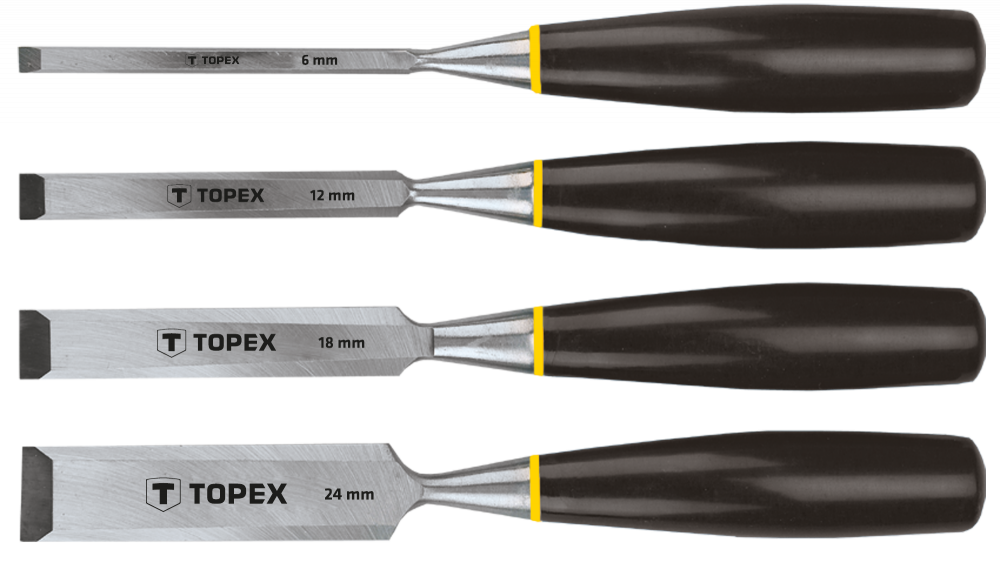 Характеристики товара Стамески TOPEX 6-24 мм, набор 4 шт.