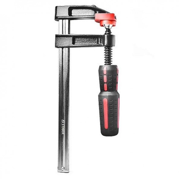 Струбцина F-типа изготовлена из нержавеющей никелированной стали, что добавляет прочность и долгий срок службы инструменту. Также струбцина защищена от коррозий.