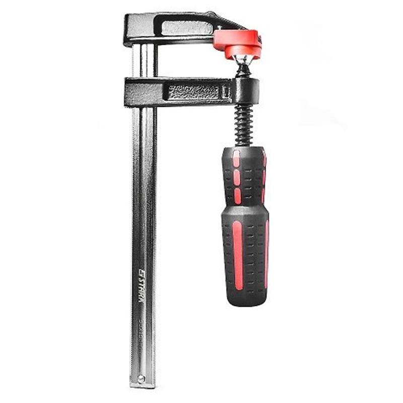 Прогумована рукоятка не ковзає в руці в процесі закручування. А також є можливість повернути рукоятку на 90 ° для більш зручного захоплення і для роботи у важкодоступних місцях. Струбцина F-типа Stark 50x250 мм - ручной инструмент для зажима деталей, предметов, изделий из пластика, дерева, стекла, металла и пр. Используется при строительстве, производстве, ремонте.