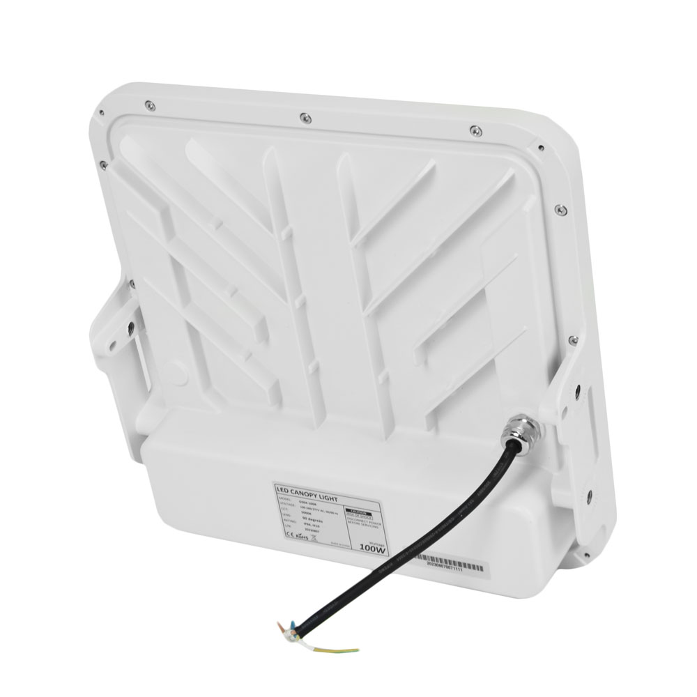 Светильник светодиодный для АЗС. Мощность: 100 Вт. Источник питания: от сети 100-220 В. Способ монтажа: накладной. Цветовая температура: 5000К. Световой поток: 160 лм/Вт. Угол светового потока: 60°, 90°,120°. Класс защиты: IP66. Коэффициент мощности > 0.95. Материал корпуса: Алюминиевый. Размеры: 354 х 330 х 92 мм