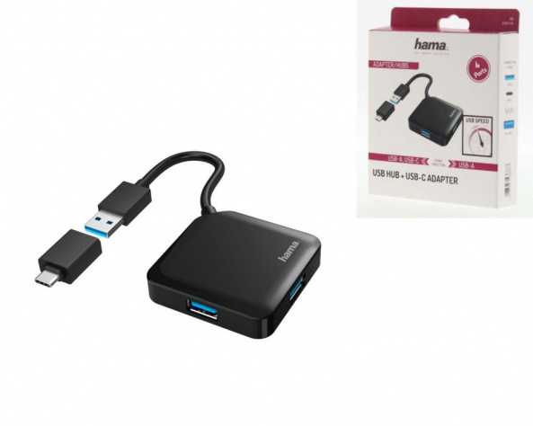 Описание товара USB-хаб Hama 4 Ports USB 3.2, USB-C Adapter Black