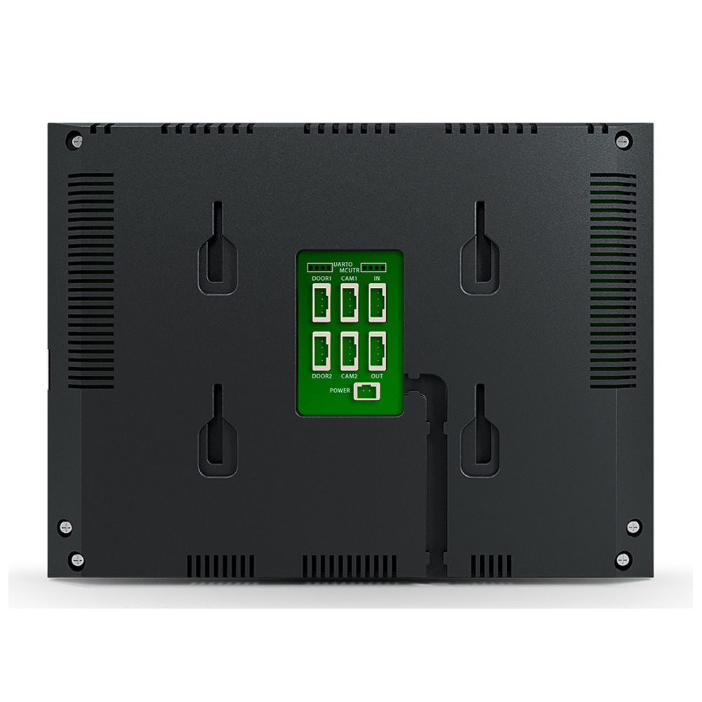 Цветной домофон с IPS сенсорным экраном 7 дюймов, подключение 2 вызывных панелей и 2 видеокамеры любого стандарта (AHD-H, TVI, CVI, CVBS), интерком на 3 видеодомофона. Два динамика по 2 Вт в отдельной акустической камере. 2 сменные передние панели. Разговор по громкой связи. Слот microSD до 64 Гб, питание 100-240V, потребление 7 Вт, в режиме ожидания 3 Вт. Корпус черного цвета. Размеры: 176 х 133 х 20 мм. Рабочая температура: –10 ... +55˚C.
