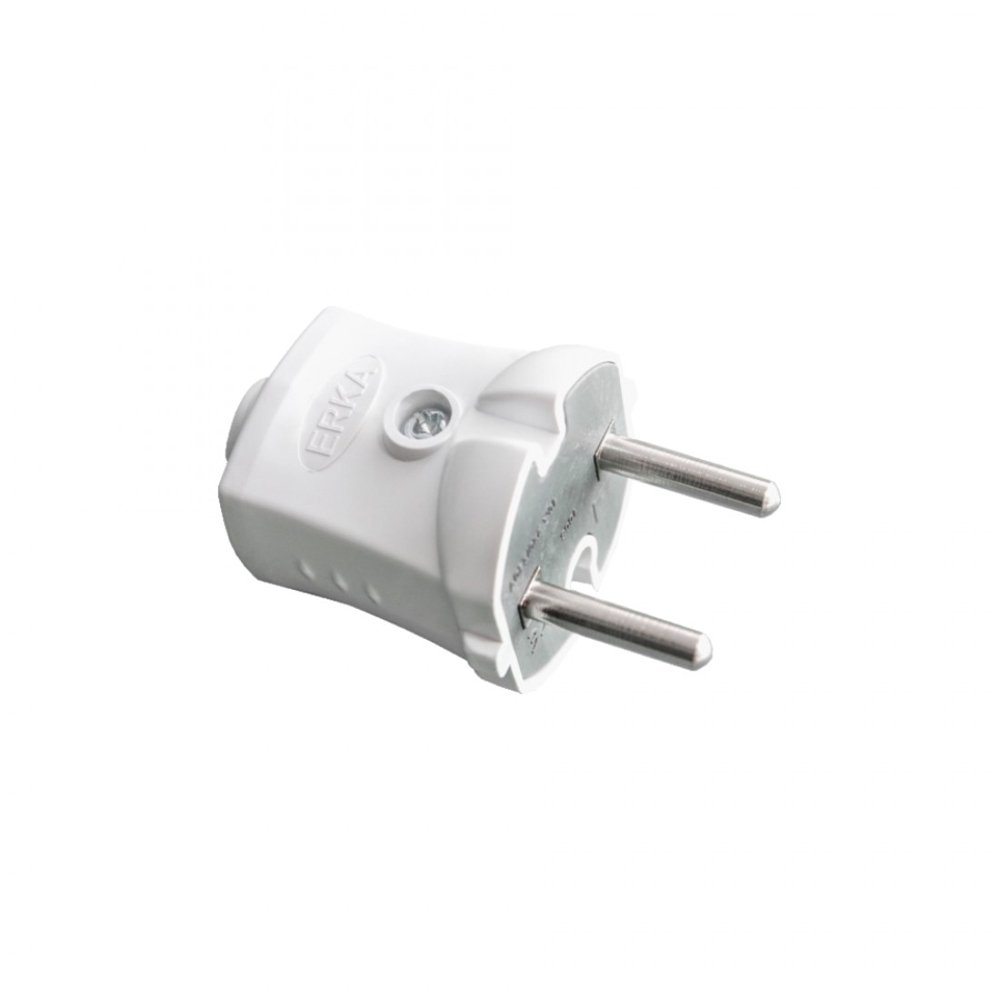 Вилка электрическая ERKA 1001 10 А без заземляющего контакта прямая белая