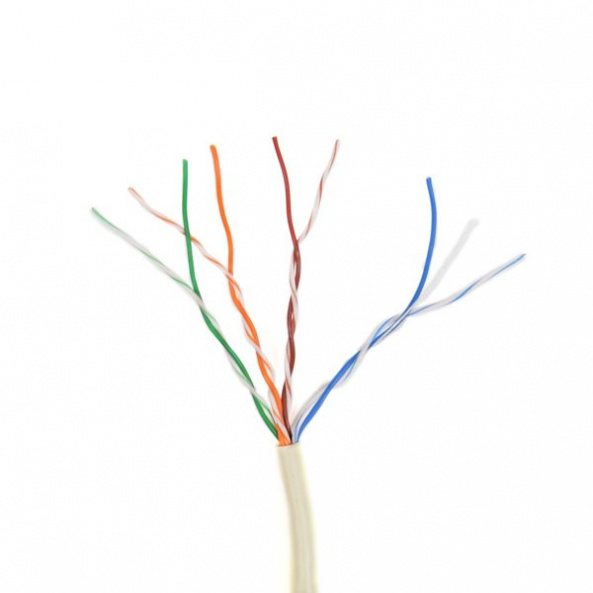 Сетевой кабель UTP (витая пара без экрана). 8 жил по 0.5мм. Не экранирован. Материал проводника - медь (Сu). Внешняя оболочка - ПВХ. Напряжение - до 60В. Сопротивление 28.5 Ом / 305м. Цена указана за метр