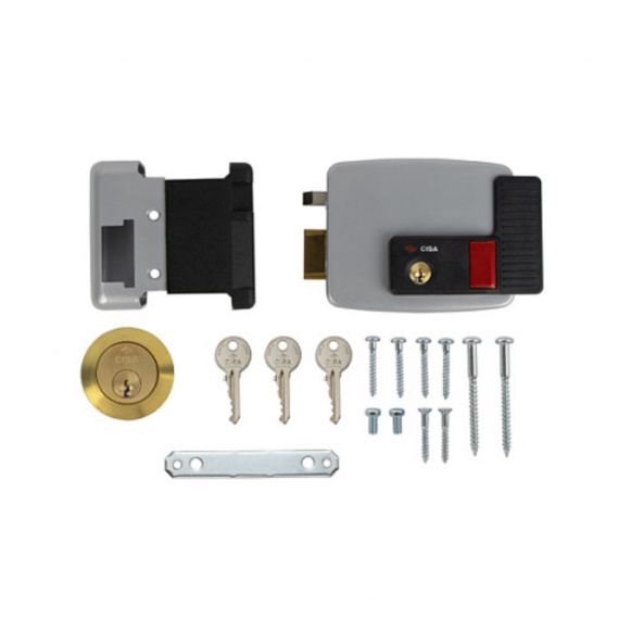 CISA 1.11630.50.4 - универсальный накладной электромеханический замок из стали для внутренней или наружной установки. Предназначен для металлических или деревянных дверей. Тип установки: дверь открывается наружу, петли слева.