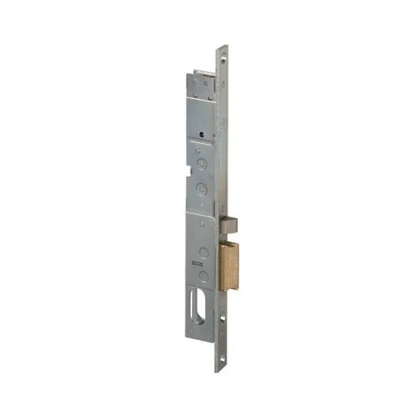 Электромеханический замок, врезной, установка внутренняя, цилиндр 18 мм, 2,3 тип двери (2-тип: дверь открывается вовнутрь, дверные петли слева, ручка справа; 3-й тип: дверь открывается наружу, дверные петли справа, ручка слева), 12В/2А. Открытие происходит подачей питания 12В на контакты замка, также возможно открытие ключем (цилиндр с ключами в комплекте).