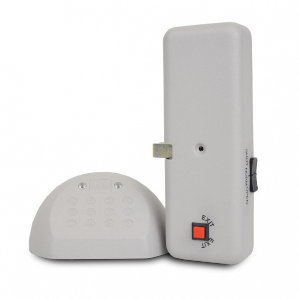 Электромеханический замок, кодовая клавиатура со скрытым набором, тип корпуса "ракушка", накладная внутренняя установка, левая/правая, питание 6В ( 4 элемента типа АА) или внешнее 7 - 14 В. Цвет: серый. Сверхпрочная ригельная запирающая система (усилие на ригель до 500кг). Вход осуществляется по коду (кол-во цифр в коде от 1 до 8), возможность дистанционного открывания дверей, подключение внешней сигнализации, световая индикация нажатия кнопок. Контроль разряда батарей. Дополнительные режимы работы: «OPEN» («день открытых дверей») или режим «SHUT» («заперто изнутри»).