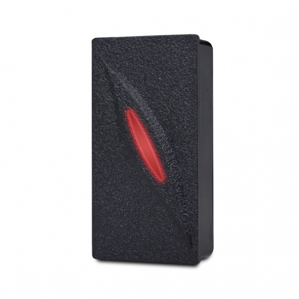 Считыватель карт и брелоков стандарта Em-Marine 125кГц; Wiegand-26; Дальность считывания 10см; Питание 6-14В; Потребление 70мА; IP65; Температура -20°C до + 65°C; Размеры 78х43х17мм. Цвет: черный