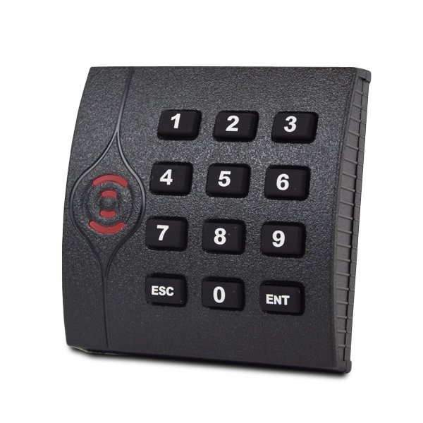 Считыватель карт и брелоков стандарта Em-Marine 125кГц со встроенной клавиатурой; Wiegand-26; Дальность считывания 10см; Питание 6-14В; Потребление 70мА; IP64; Температура -20°C до +65°C; Размеры 86х86х17мм. Цвет: черный
