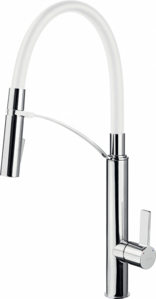 Описание товара Смеситель для кухни Deante Gerbera, дл.излива - 200мм, вытяжной, 1 рычаг, хром-белый